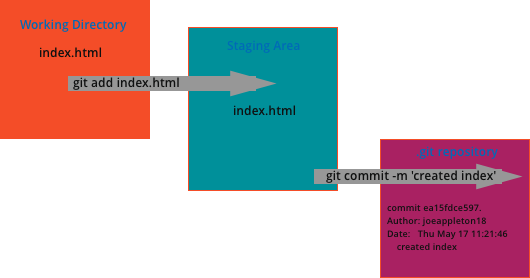 - One or more files are firstly staged for commit - Once the commit is ready a snap shot is taken in the form of a `commit` . A programmer defined message is attached to the commit describing the changes - That's it! It really is that simple at least to start with. For now just be aware that you can recover historic versions of your work. However, to keep things simple we won't be looking into file recovery until later in the unit. What's key at this point is you become comfortable with the basic GIT workflow.